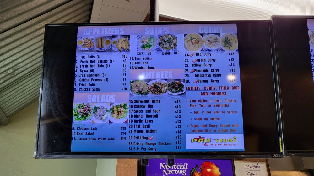 Pad Thai Express is a Thai restaurant located in Olympia, WA, known for its consistently excellent and authentic dishes prepared with fresh ingredients by a Thai chef and his family. The menu includes a variety of options, such as orange chicken, ginger broccoli, pineapple fried rice with grilled shrimp, pad thai, crab rangoon, and showering rama with spinach, chicken, and peanut sauce. Customers praise the generous portions, reasonable prices, and the delicious peanut sauce that accompanies many dishes. The restaurant offers vegan and vegetarian options, takeout, delivery, catering, and happy hour specials. With a casual and family-friendly atmosphere, Pad Thai Express provides outdoor seating, free Wi-Fi, and private dining options. Dog-friendly and accepting credit cards and Android Pay, it's a favorite spot for both locals and visitors alike. Whether dining in or taking out, Pad Thai Express promises flavorful and satisfying Thai cuisine.