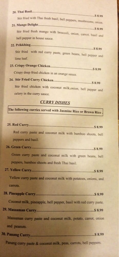 Your choice of meat stir fried with fresh mango, broccoli, onion, carrot, basil, and bell pepper in house special chili sauce.