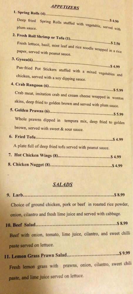 Thai grilled steak salad mixed in lime juice, rice powder, and fish sauce with onions, cilantro, and basil. Served on top of fresh green leaf lettuce.